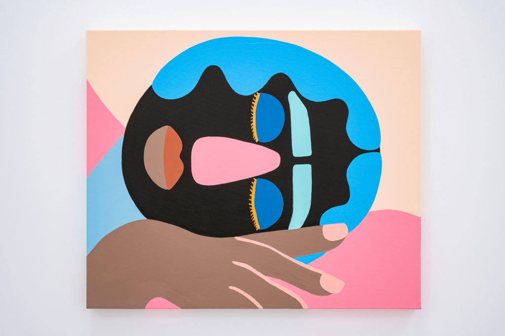 Segun has solidified her style through her carefully constructed vibrant pastel pallet to communicate restful intimate portraits. Her large scale canvases invite the viewer to follow the curvatures of her figures, where their calming features and heavy eyelids create a sense of peace. Despite the sort of cubist abstraction that she harnesses, the considered colour scheme makes these bold tones feel overwhelmingly serene.